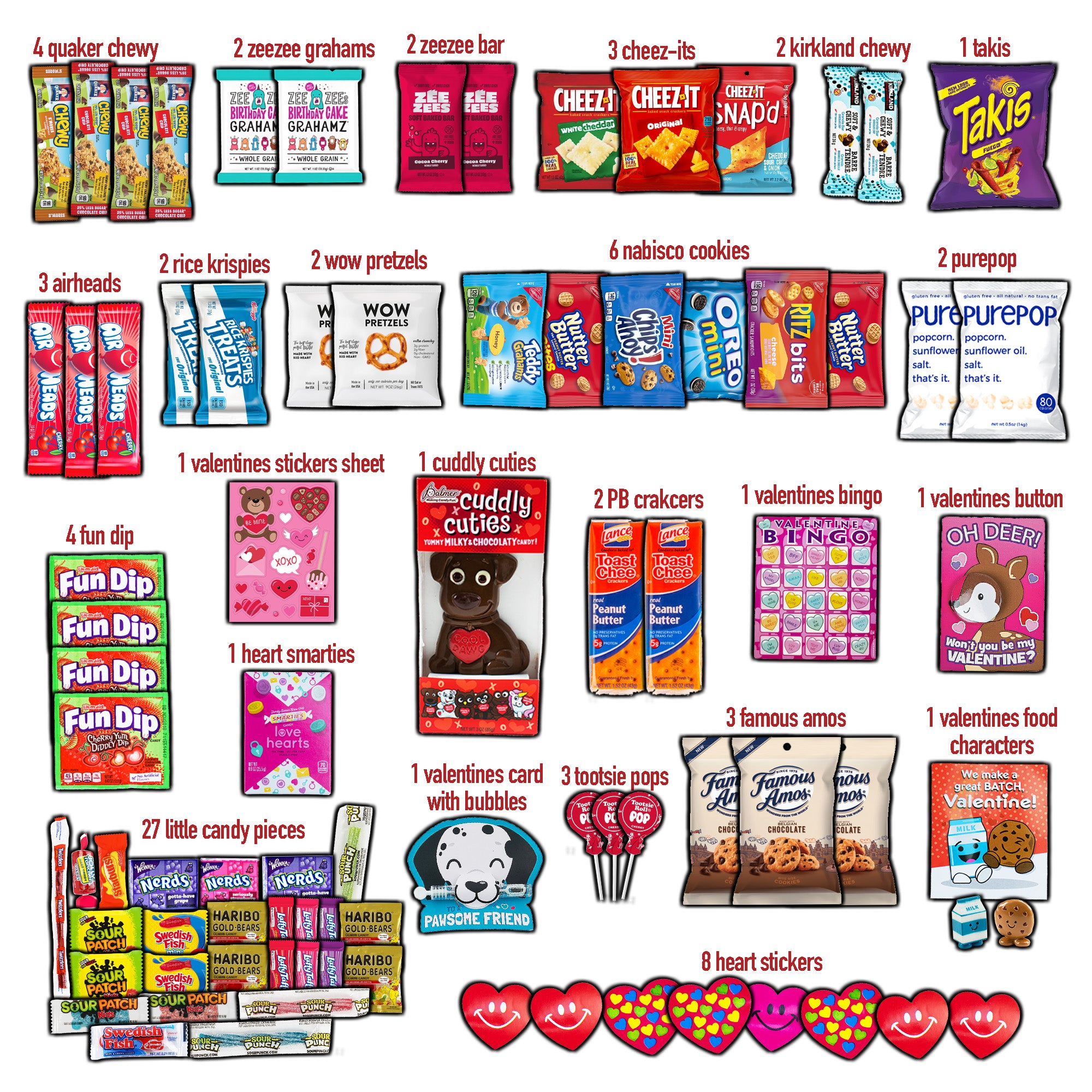 Valentine's (80ct) Care Package (80ct) β Gift-Ready for Students, Birthdays & Get-Well